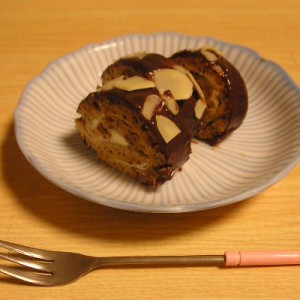 で、今回はチョコでコーティングして、後は有り合わせでアーモンドスライスを乗っけてみました。