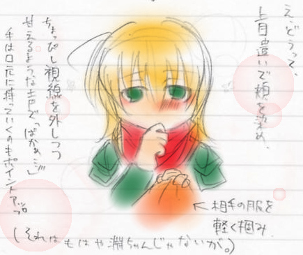 「可愛い」と男に誉められた場合に女の子は、頬を紅潮させてちょっと俯き気味に、相手の服を掴んで「ばかぁ・・・」と言えばいいと教えられたので。