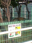 こいつ、最初は橋の歩道にいたんですが、人が歩いてきたのに気付いて人の向かってる方向にひたすら逃げ惑い、最終的に橋の向こうの工場の塀に昇って行きました。